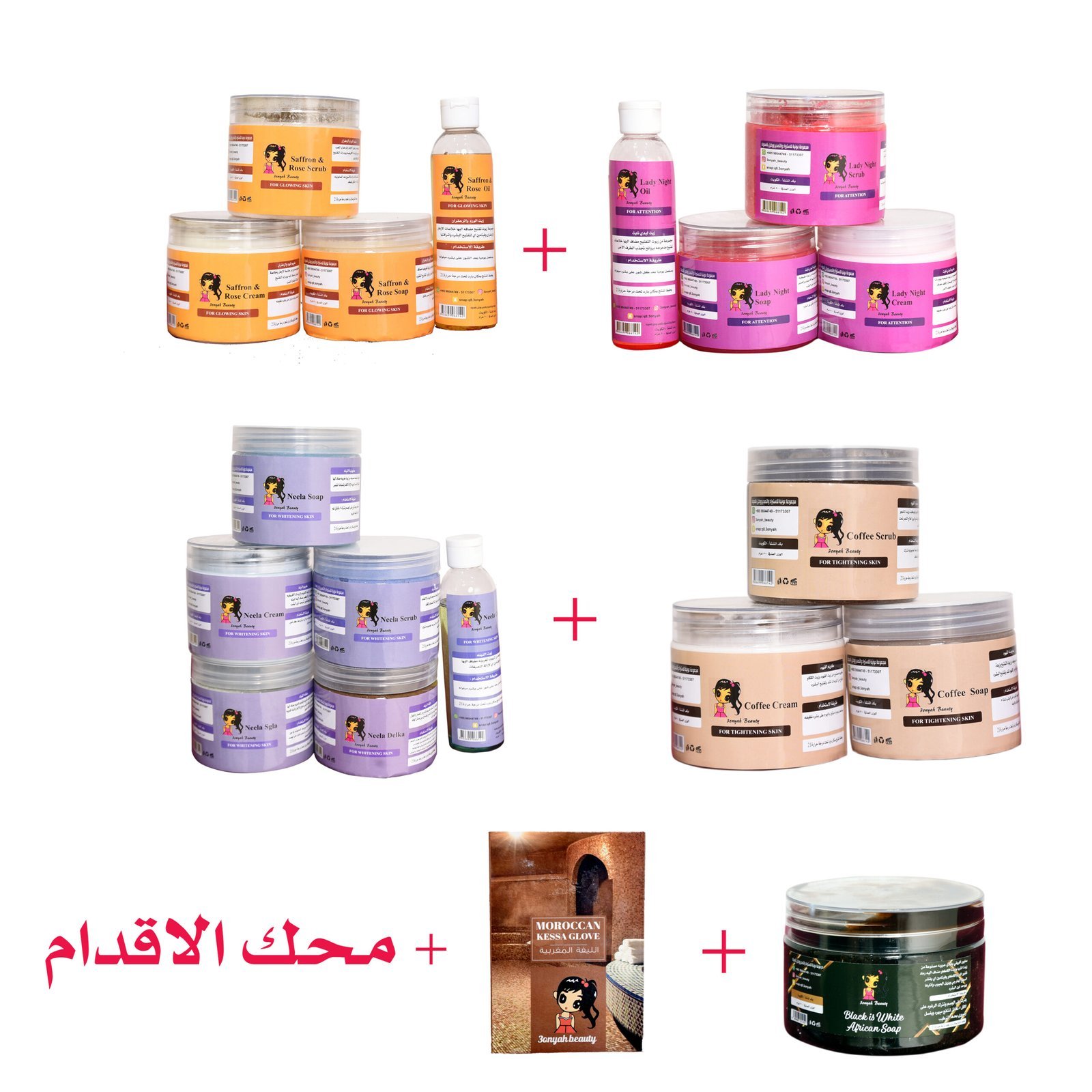 بوكس ليدي نايت +بوكس الورد والزعفران +بوكس الجوكليت والقهوه +بوكس النيله + الصابونية الأفريقية + ليفه + محك اقدام